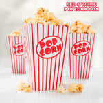 HD Novelty Retro Popcorn Boxes 10-Pack Small Red and White Containers for Film Night, Cinema, Birthday Parties, and Sleepovers